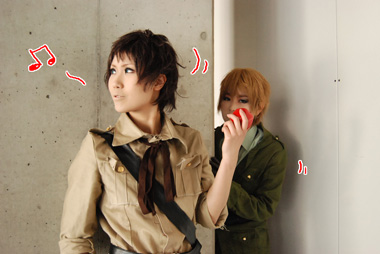 犬猿の仲な親分と眉毛で軍服合わせ!