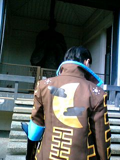 聖徳太子(命名)の像の前で撮影。