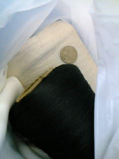 写真がその糸。対比物は500円だま。合わせて100円の図。